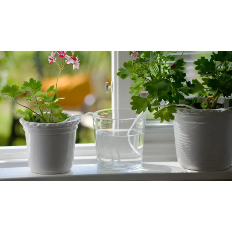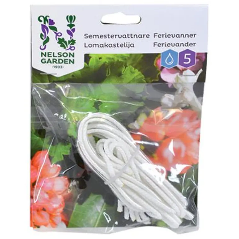 Lomakastelija helpottaa kasvien kastelua loman aikana. Laita kastelija veteen yöksi, langan täytyy kastua aivan kokonaan.