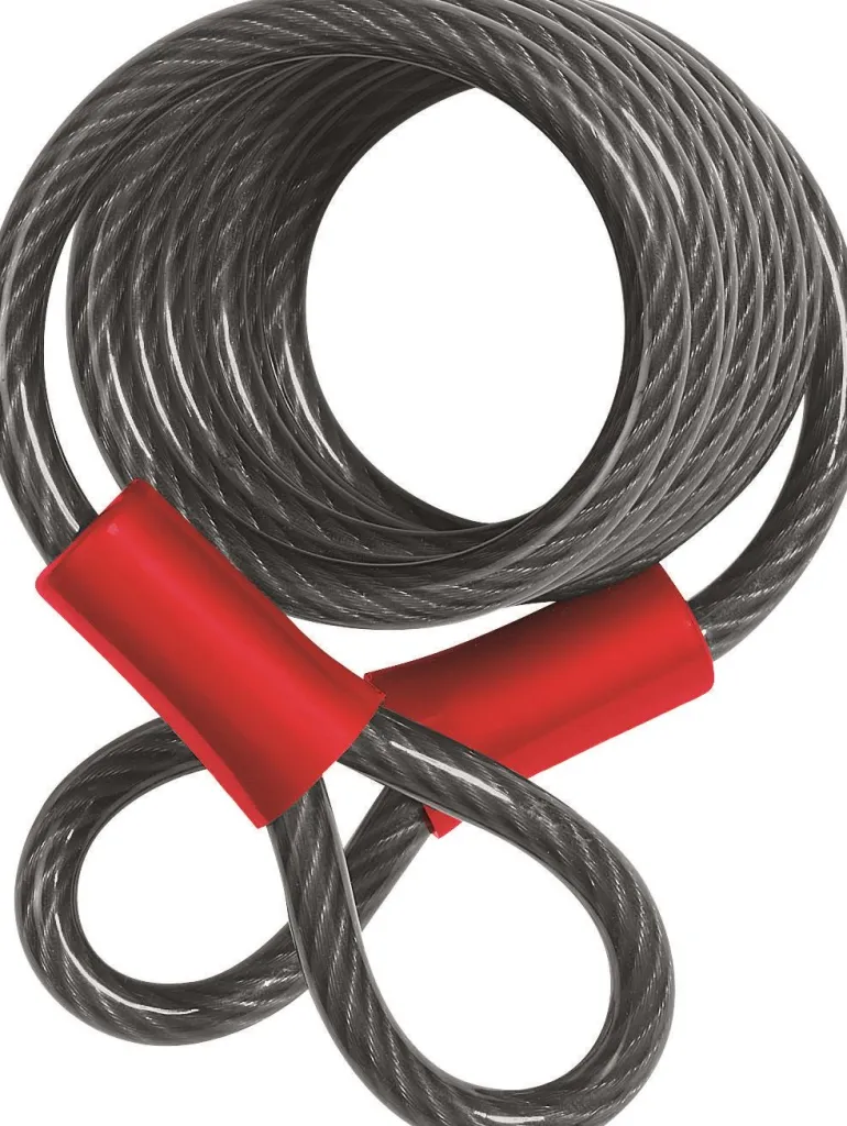 Muovipinnoitettu ABUS -lukitusvaijeri, 185 cm silmukoilla.