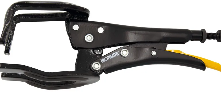 Itselukittuvat ja pehmeästi avautuvat lukkopihdit U-muotoisilla leuoilla. Epoksipinnoitettu. Pitää kaksi työkappaletta yhdessä esim. hitsauksen aikana. Täysi pääsy liitokseen leukojen muotoilun ansiosta.