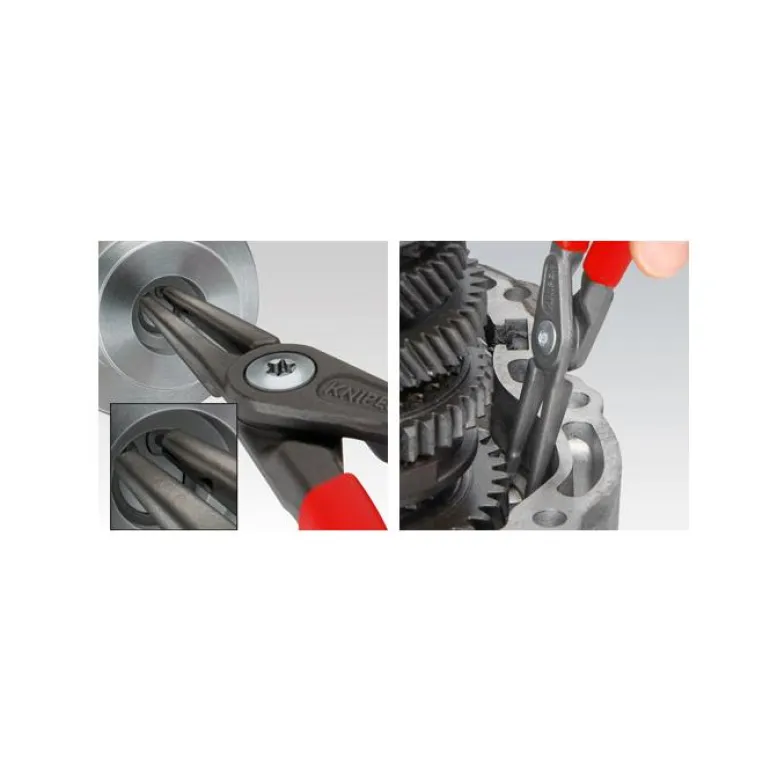 Lukkorengaspihti, jossa on suorat kärjet sisäpuolisille lukkorenkaille. ??Irrotettavan kappaleen muotoa myötäilevät, puristetusta jousiteräksestä valmistetut lukittavat nokat ovat käytössä turvallisia esimerkiksi juuttuneiden renkaiden irrottamisessa myös silloin, kun käyttäjä käyttää liiallista voimaa. Pihtien suuret kosketuspinnat ja kärkien sijainti estävät renkaita irtoamasta otteesta.