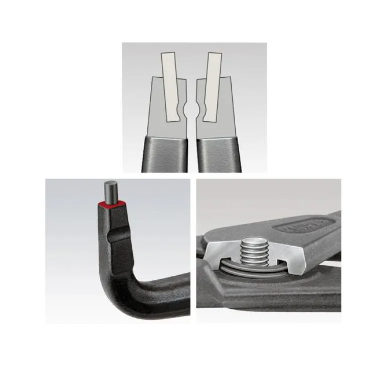 Lukkorengaspihti, jossa on taivutetut kärjet ulkopuolisille lukkorenkaille. ??Irrotettavan kappaleen muotoa myötäilevät, puristetusta jousiteräksestä valmistetut lukittavat nokat ovat käytössä turvallisia esimerkiksi juuttuneiden renkaiden irrottamisessa myös silloin, kun käyttäjä käyttää liiallista voimaa. Pihtien suuret kosketuspinnat ja kärkien sijainti estävät renkaita irtoamasta otteesta.