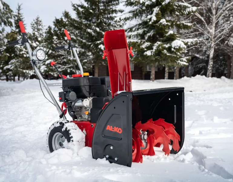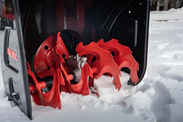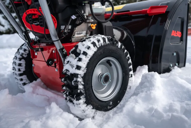 Valinnainen pyöräveto mahdollistaa helpon ohjattavuuden lumitöiden aikana. Talvipyörät tarjoavat hyvän pidon ja vaivattoman liikuteltavuuden myös haastavissa olosuhteissa. Vahvan talvikäyttöön suunnitellun OHV-moottorin sekä säädettävän pyörävedon (5 eteen- ja 2 peruutusvaihdetta) ansiosta kaksivaiheinen (lumiruuvi ja heittopyörä) AL-KO SnowLine 620 E II -lumilinko on erityisen miellyttävä käyttää.