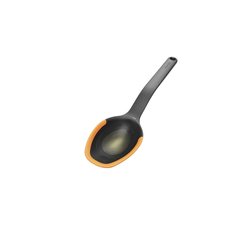Fiksu ja kätevä kauha, jossa joustavat silikonireunat. Helppo kaapia kaikki pois pannulta vahingoittamatta pinnoitetta. Integroitu mitta-asteikko teelusikalle, ruokalusikalle ja 0,5 dl. Konepesun kestävät.
