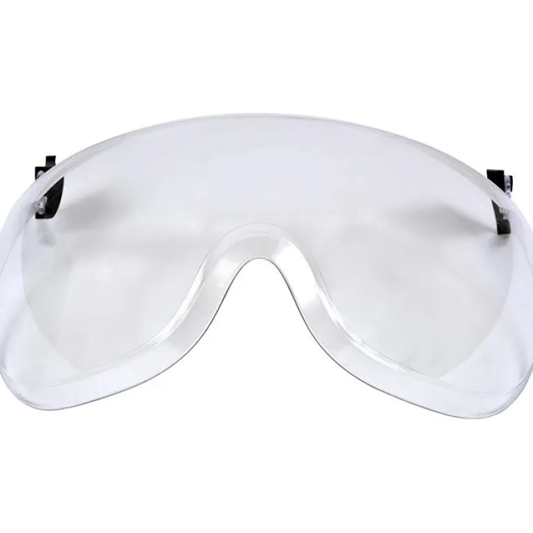 Lyhyt läpinäkyvä visiiri valettua polykarbonaattia. Suojaa nopeasti sinkoavilta hiukkasilta ja äärimmäisiltä lämpötiloilta. Anti-Fog- ja Anti-Scratch-pinnoitteet.