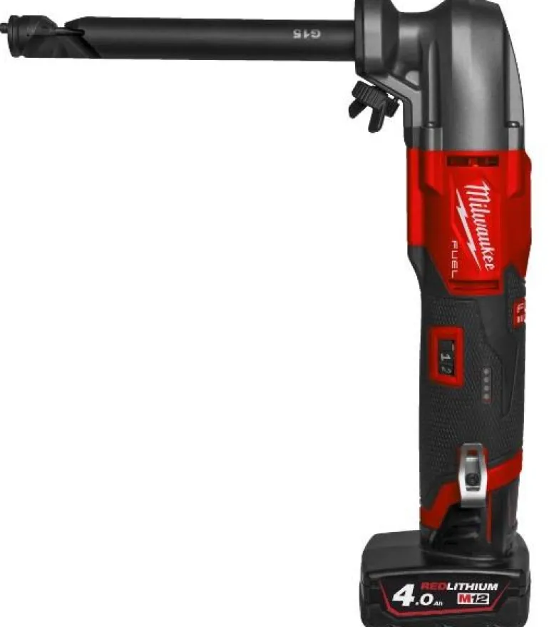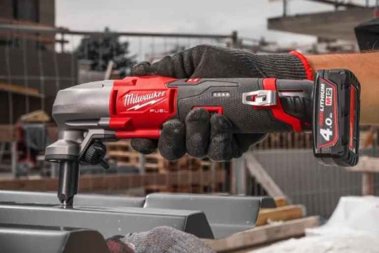 M12 FUEL™ -akkunakertaja 1,6 mm säädettävällä nopeudella maksimaalista hallittavuutta varten. 12V -akkunakertajan maks. leikkuukapasiteetti kevyeen teräkseen 1,6 mm, ruostumattomaan teräkseen 1,2 mm ja alumiiniin 2,1 mm. Paino akun kanssa 1,6 kg (4,0 Ah).