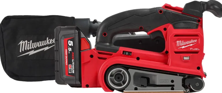 M18 FUEL™ -nauhahiomakone, jonka kompakti muotoilu ja litteä etu- ja sivuosa mahdollistavat tasoitushionnan. Kerää 90 % pölystä yleismallisen pölyportin kautta tai monikerroksisen pölypussin avulla.