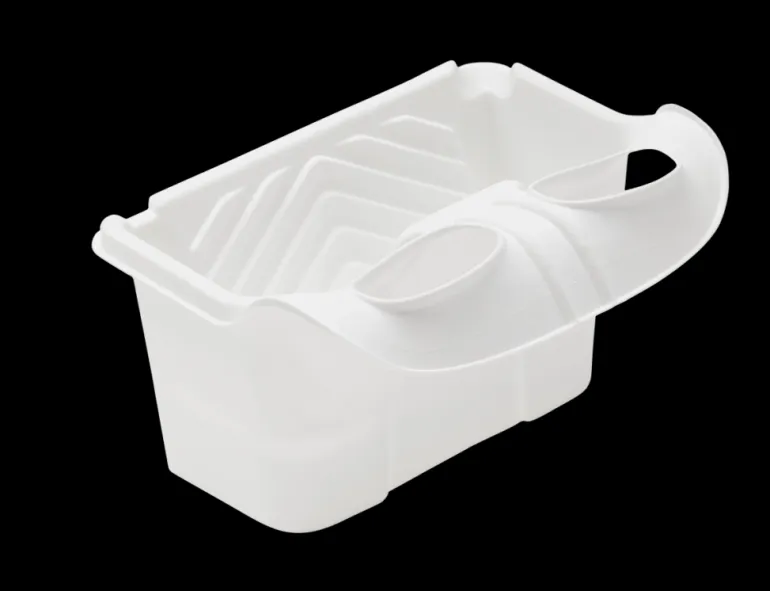 Maalikaukalo, joka on suunniteltu sekä 50 mm:n siveltimille että 10 cm:n teloille. Kädensijoilla sekä oikea- että vasenkätisille käyttäjille. Tuki siveltimelle, rullauspinta telalle ja kaatonokka.