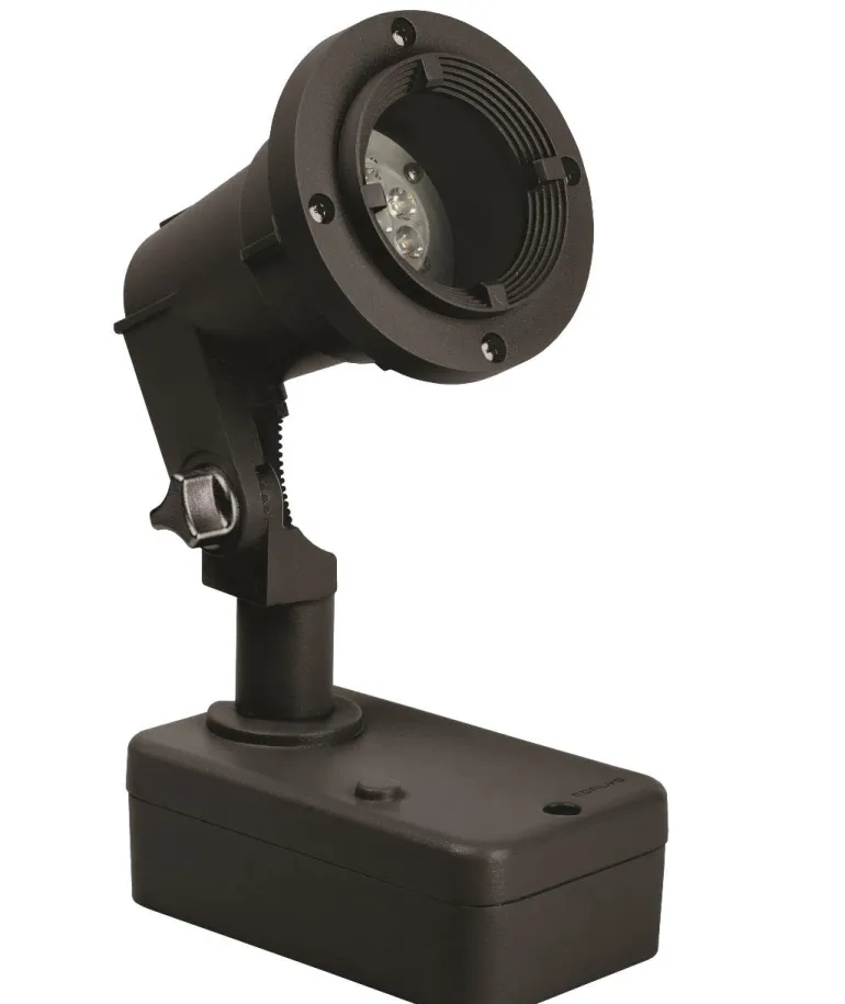 Kohdevalaisin valettua alumiinia maiseman ja kylttien valaisuun. Voidaan asentaa seinälle tai maahan mukana tulevan maapiikin kanssa. Säädettävä kallistuspää. Sisältää kytkentärasian ja 2,8 m:n kaapelin.