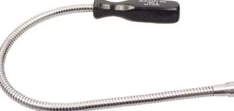 Magneettietsin pudonneiden osien keräämiseen vaikeasti tavoitettavista paikoista. Etsimessä on magneetti ja säädettävä, taipuisa varsi.