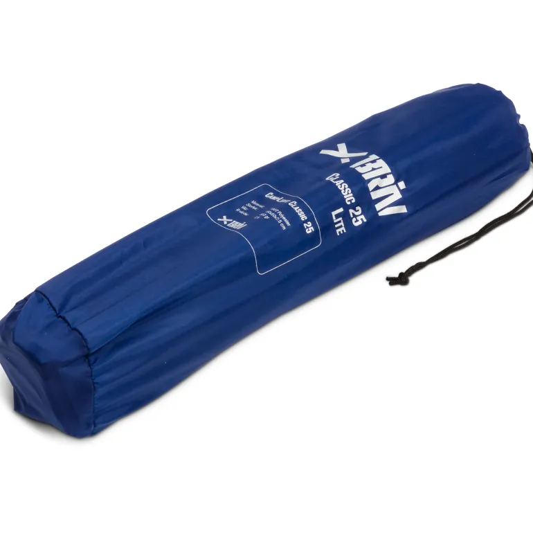 Briv Classic 25 on itsestään täyttyvä laivastonsininen makuualusta. Vakiokokoinen makuualusta sopii retkeilyyn, kun ylimääräisiä vieraita on kylässä tai lapset ovat menossa leirille. Kevyt ja helppo ottaa mukaan. Huomaa, että on aina tarpeen puhaltaa tai pumpata ilmaa täyttääksesi sen oikein sekä saavuttaaksesi oikean paksuuden ja mukavuuden.