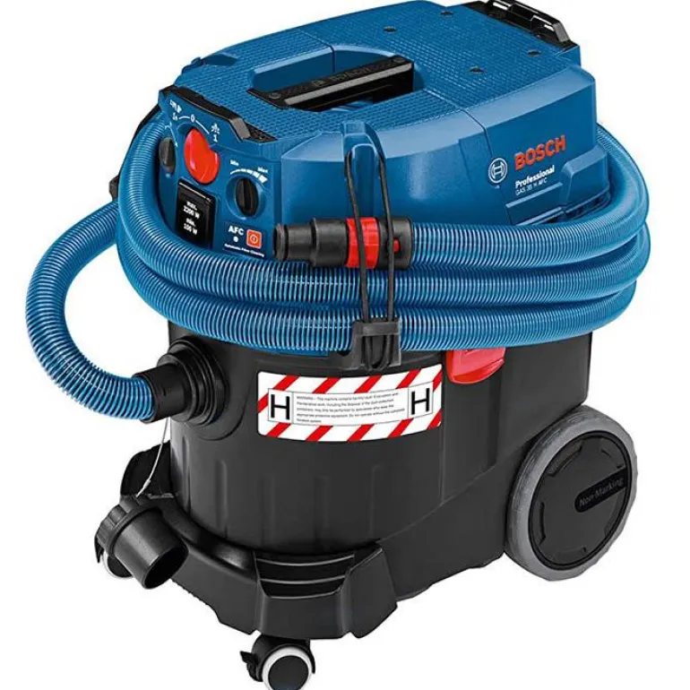 Bosch GAS 35 H AFC on huipputehokas märkä-/kuivaimuri, joka takaa entistä paremman käyttöturvallisuuden. Sen turvasuodatin kerää 99,995 % terveyttä vaarantavista pölyistä. Hyväksyntä H-luokan pölyn imurointiin parantaa entisestään käyttöturvallisuutta, koska se suojaa syöpää ja muita sairauksia aiheuttavalta, orgaanisten materiaalien (esim. homeitiöt) sekä säiliöiden valmistusmateriaalien (esim. lasikuitu) pölyltä. Sen suodattimen automaattisen puhdistusmekanismin ansiosta vältyt turhilta työn keskeytyksiltä. Virtauksen valvontatoiminto tarkkailee imurin jatkuvaa ilmavirtausta ja varoittaa äänimerkillä, jos ilmavirtaus on liian alhainen. Kaikki Click & Clean -järjestelmällä varustetut Bosch-sähkötyökalut voi yhdistää suoraan GAS 35 H AFC Professional -imuriin ilman adapteria. Erittäin suorituskykyinen 1 380 W:n imuturbiini, jonka 254 mbaarin (millibaarin) imuteho takaa tehokkaan pölynpoiston. Märkä-/kuivaimuri on varustettu antistaattisilla ominaisuuksilla staattisen sähkön varautumisen vähentämiseksi.