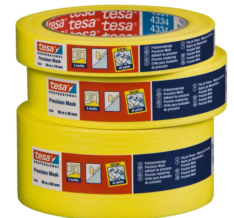 Tesa Precision Mask 4334 maskiteippi, joka tarjoaa parhaan perustan ammattimaiselle sisämaalaukselle. Erittäin ohut paperi on päällystetty erityisellä akryyliliimalla, joka takaa terävät värireunat ja suojaa alustaa maaliroiskeilta. Naamiointiteippi soveltuu myös pintojen peittämiseen ruiskumaalauksen aikana ja maalin kuivumisen aikana; kestää 120°C:n lämpötilan. Nauhan korkean laadun ansiosta jälkikäteen ei ole kallista ja aikaa vievää työtä, koska nauhasta ei jää jälkiä.