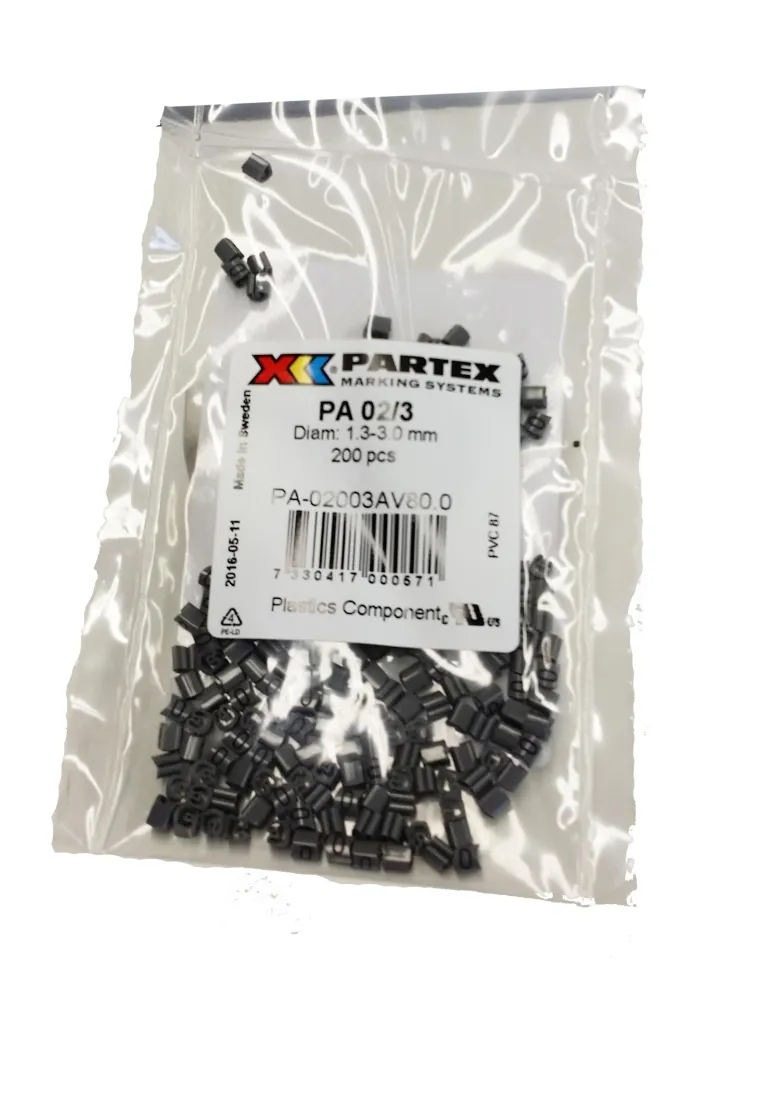 Keltainen mustalla tekstin värillä. Johtojen pinta-aloille 0,5–1,5 mm², johtojen halkaisijoille 1,3–3 mm.