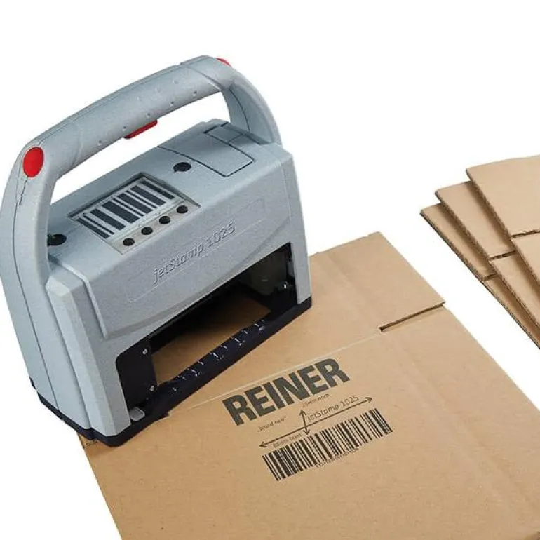 Reiner JetStamp 1025 on siirrettävä elektroninen merkintälaite, joka on ihanteellinen tulostamiseen suuremmille pinnoille, kuten kuormalavoille, ja materiaaleille, kuten pahville, metallille, muoville, tekstiileille, puulle ja paperille.