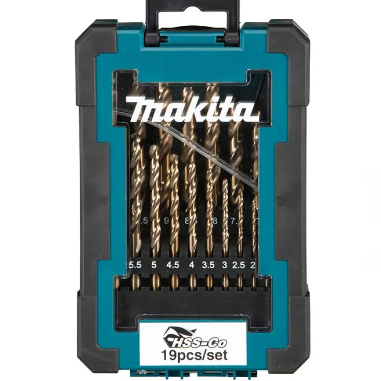 Makita D-67561 sarja sisältää 19 kpl poranterää koossa Ø 1-10 mm, 0,5 mm välein. 118 asteen porakärjillä teräkselle ja koville seoksille.