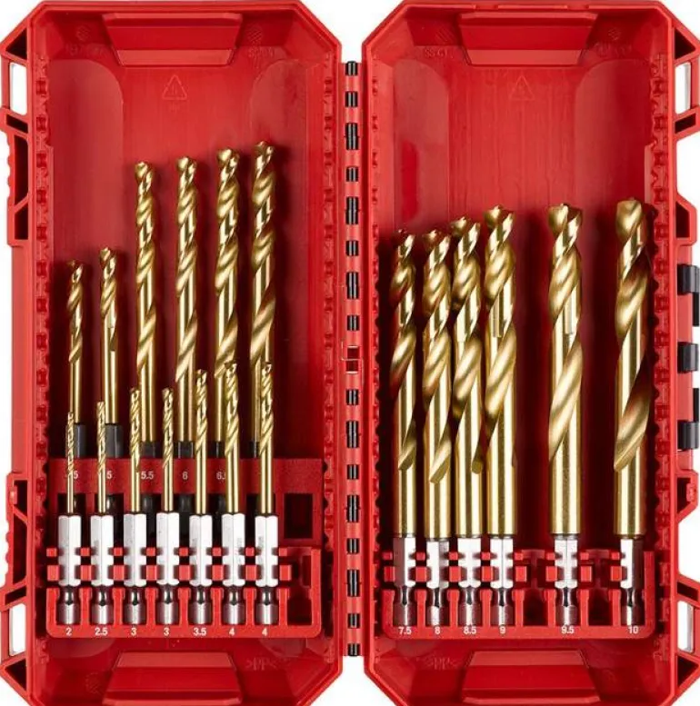 Milwaukee HSSG-TIN POF 19P on 19-osainen metalliporanteräsarja. Iskuluokitellut poranterät 1/4″ Hex-varrella iskeville ruuvinvääntimille. Chip Breaker -kärki hakettaa poratun lastumateriaalin tehokkaampaa materiaalinpoistoa varten, mikä myös vähentää lämmöntuottoa.