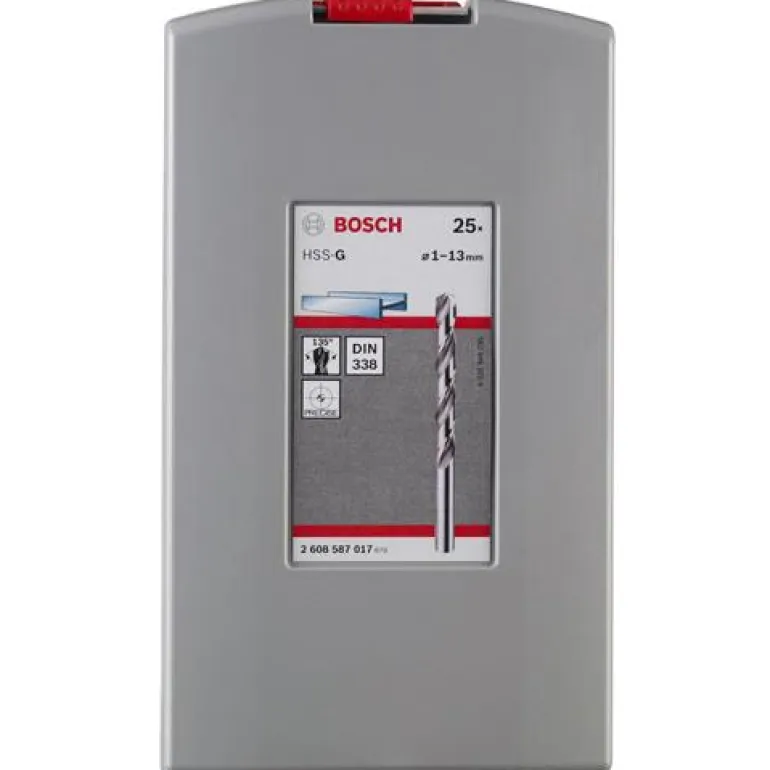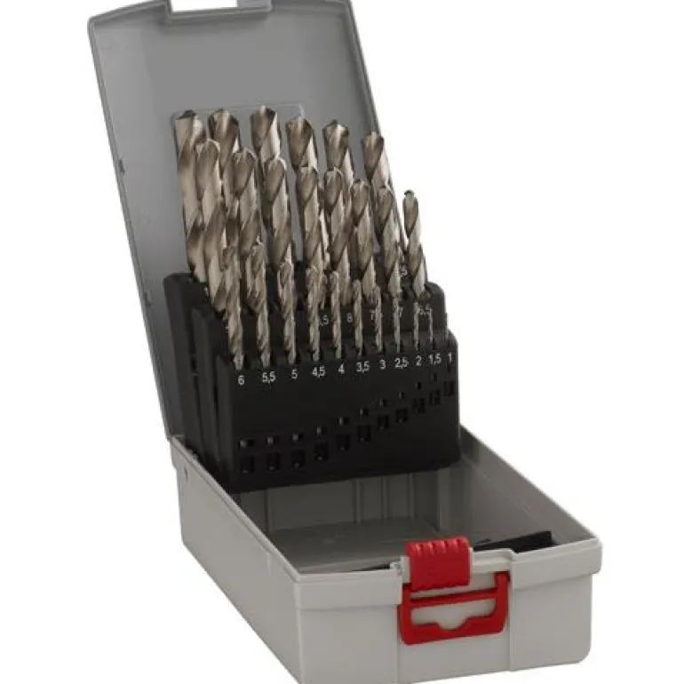 25-osainen HSS-G-metalliporasarja (Ø 1-13 mm) kätevässä säilytyslaatikossa. Tarkkuushiottuja itsekeskittyviä metalliporanteriä, ristihionta, porauskärki 135º.