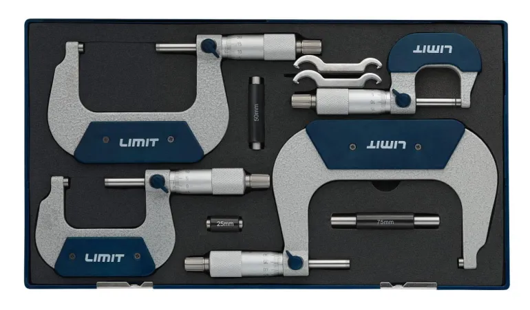 Ulkoiseen mittaukseen tarkoitettu mikrometri, jossa on taottu sanka ja mattakromattu asteikko. Karkaistussa 6.5 mm:n ruuvissa kovametalliset, hienohierretyt mittauspinnat. Kitkaruuvi ja lukitusvipu. Valmistettu DIN 863 -standardin mukaisesti.