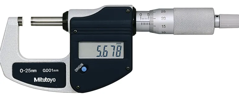 Ohut digitaalinen mikrometri, joka helpottaa mittaamista ahtaissa tiloissa. Tässä mikrometrissä on kovametallipinnoitetut, hiotut ja hienoläpätyt mittauspinnat.