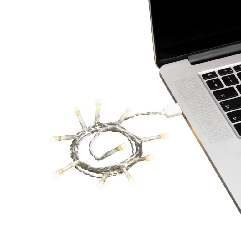 Konstsmide 1772-133 on valosarja 10 lämpimän valkoisella LEDillä (huurrettu). Läpinäkyvä kaapeli. USB-liitin.