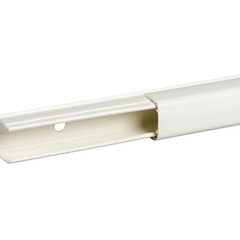 Minikanava PVC:stä, esirei’itetyt asennusreiät 100 mm. Hyväksytty yksinkertaisesti eristetylle kaapelille. Teippiasennus vain heikkovirralle. Irrottaminen vaatii työkaluja.