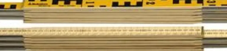 Kokoontaitettava puusta tehty mittalatta. Rakennettu tuumamitan tapaan. Tämä tekee taittamisesta ja kuljettamisesta helppoa.
