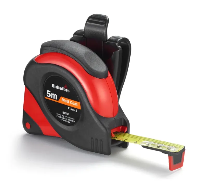 - Ainutlaatuinen vyöpidike, josta mittanauhan voi irrottaa nopeasti yhdellä kädellä