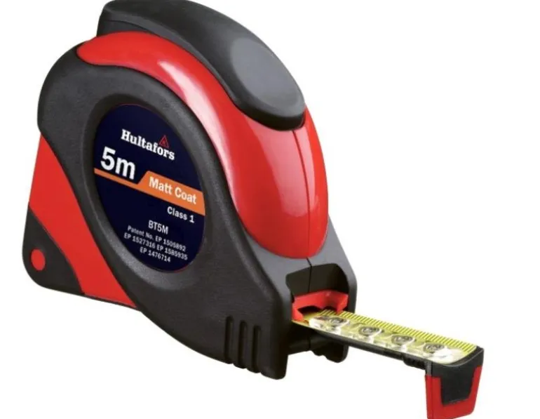 Teräsmittanauha, jossa on kaksipuolinen asteikko palkkien tarkkaan mittaamiseen ja asettamiseen. Keltaisen mittanauhan asteikko on valmistettu mustesuihkutekniikalla ja himmeä pinta ehkäisee heijastumia. Alapuolella on CC-asteikko, joka helpottaa esimerkiksi palkkien asettamista. Asteikko on CC-mitoille 30/60 ja 45 cm. Kulutukselle alttiit osat on suojattu kumilla ja iskunkestävällä ABS-muovista valmistetulla kotelolla. Vaimennettu takaisinkelaus suojaa päätyhakasta vioittumiselta.