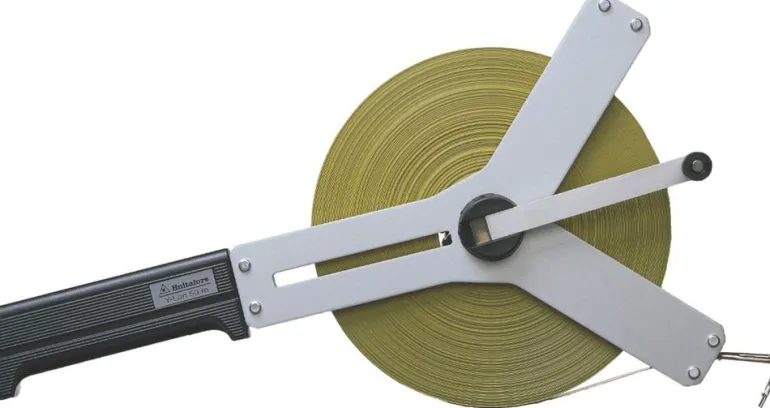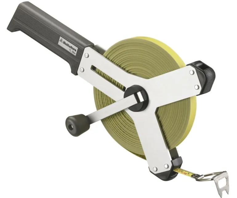 Keltainen kulutusta kestävä teräsmittanauha, nauhan leveys 13 mm. Asteikko on valmistettu mustesuihkutekniikalla ja suojattu lisäksi paksulla nailonkerroksella, joten se on erittäin kestävä.