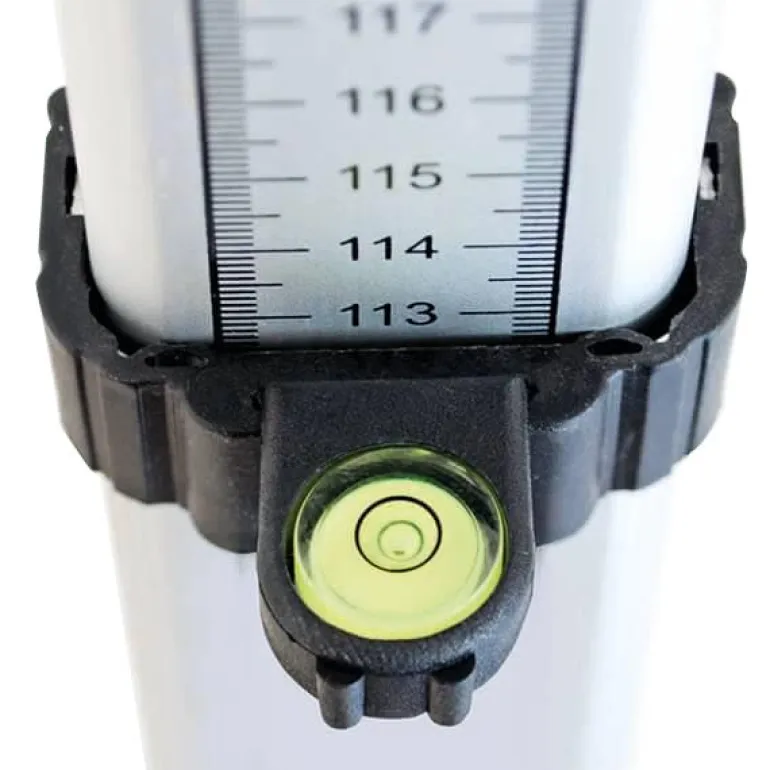 Topcon TN-14 on alumiininen mittapuikko, 4 metriä. E-skaala etupuolella ja millimetriporrastus takapuolella.