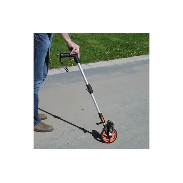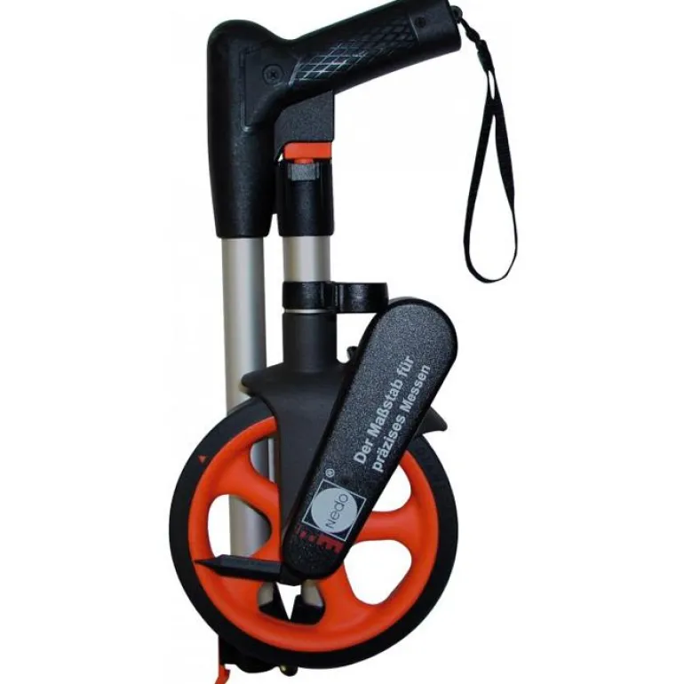 Pienikokoinen ja kevyt Nedon mittapyörä etäisyyksien mittaamiseen. Kahvassa olevan integroidun jarrupainikkeen ansiosta käsittely on kevyttä.
