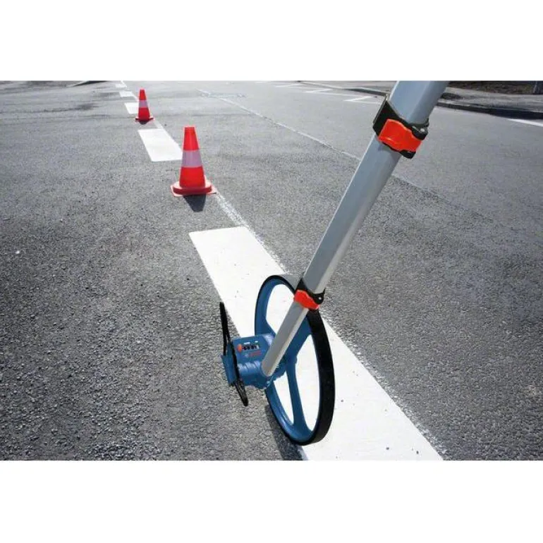 Lätt och smidigt mäthjul med stöd för uppmätning av avstånd. Mäthjulet har en hjuldiameter på 318,5 mm, ett maxmätvärde på 9999,99 m och en mätnoggrannhet på 1 dm/100 m.