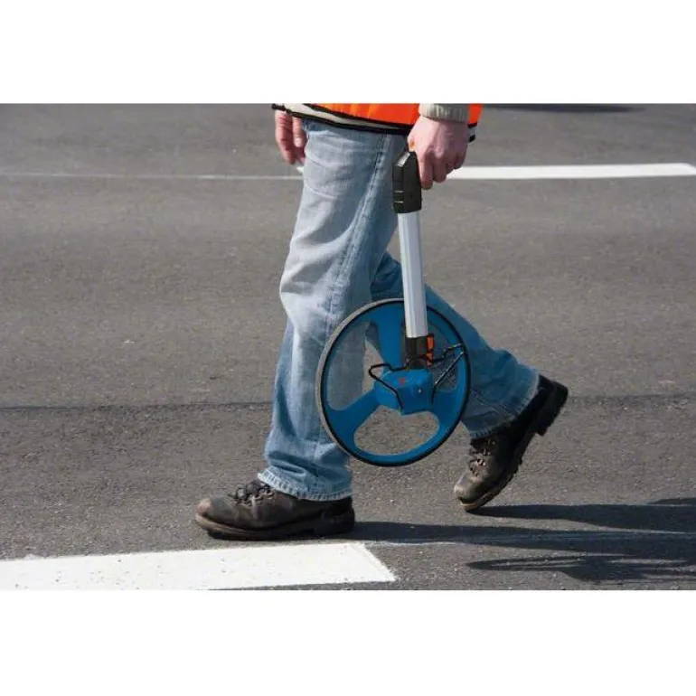 Kevyt ja kätevä mittapyörä etäisyyksien mittaamiseen. Mittapyörän halkaisija on 318,5 mm, enimmäismittausarvo 9999,99 m ja mittaustarkkuus 1 dm/100 m.