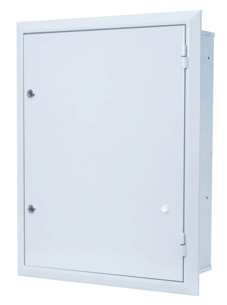Mittarikaappi metallilevyä, uppoasennukseen. Potentiaalin tasauskisko (tyyppi PUS) toimitetaan vakiona PE-paneeliin kytkettynä kaikissa uppoasennettavissa kaapeissa.