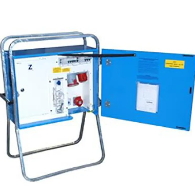 Mittauskeskus, joka soveltuu pienempiin rakennuksiin, torikauppiaille jne. Useita erikokoisia pistorasioita. Kaikki pistorasiat 32A asti on suojattu 30 mA vikavirtasuojalla. 63A-pistorasia on suojattu 300 mA vikavirtasuojalla.