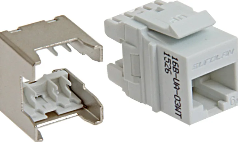 Eurolan 16B-UA-03WT on Keystone UTP -tyyppinen modulaarinen liitin. RJ45 8(4).