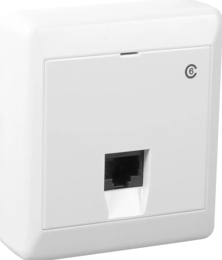 Luokan 6 pinta-asenteinen modulaarinen pistorasia RJ45-liittimellä. Johtimet kytketään LSA-liitäntärimoihin. Modulaarinen pistorasia on hyväksytty standardin SS EN 50 173-1 mukaisesti ja tarkoitettu pinta-asennukseen. Liitäntälohkot on merkitty selkeästi värein EIA/TIA: n mukaisesti.