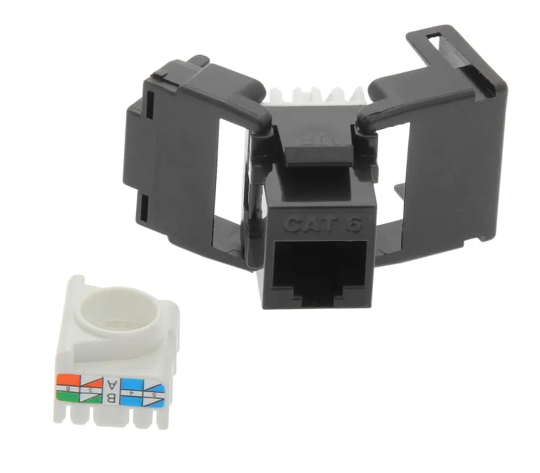 Modulaarinen pistorasia RJ45-liittimellä, vakiomallinen Keystone-aukko, luokka 6. Liitin on hyväksytty jopa 250 MHz:n taajuuksille suurinopeuksisissa sovelluksissa (Gigabit Ethernet).