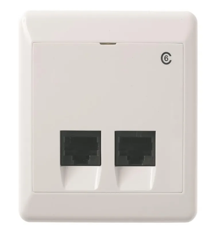 Täydellinen modulaarinen pistorasia UTP C6 pinta-asennukseen. Johtimet kytketään LSA-liitäntärimoihin.