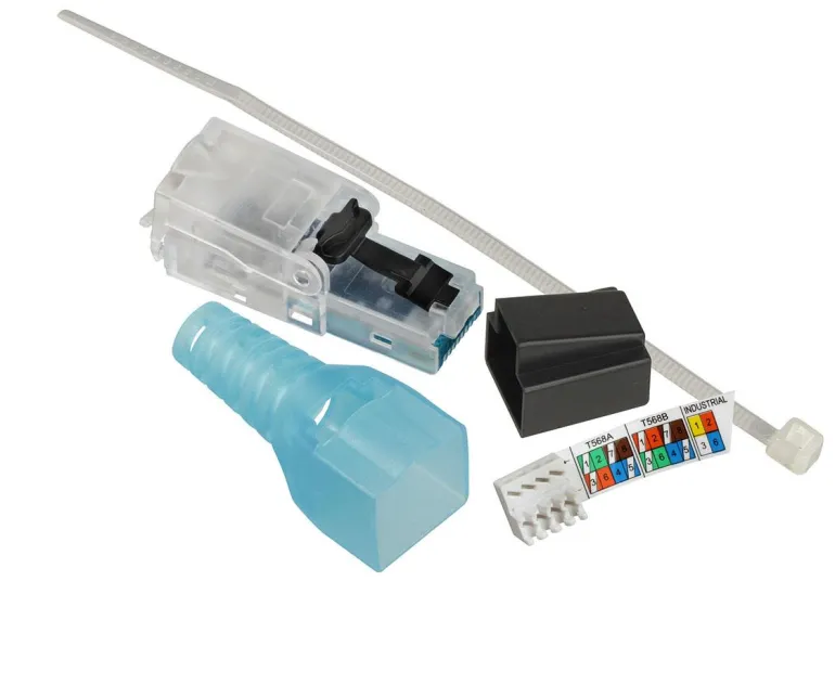Actassi RJ45 -pistoke Cat 6 kentän päättämistä varten. Pistoke on läpinäkyvä, siinä on TIA 568 A/B -merkintä ja se on tarkoitettu kiinteille ja monilankaisille AWG 23-26 -johtimille. Erikoistyökaluja ei tarvita. Harmaa ja läpinäkyvä.