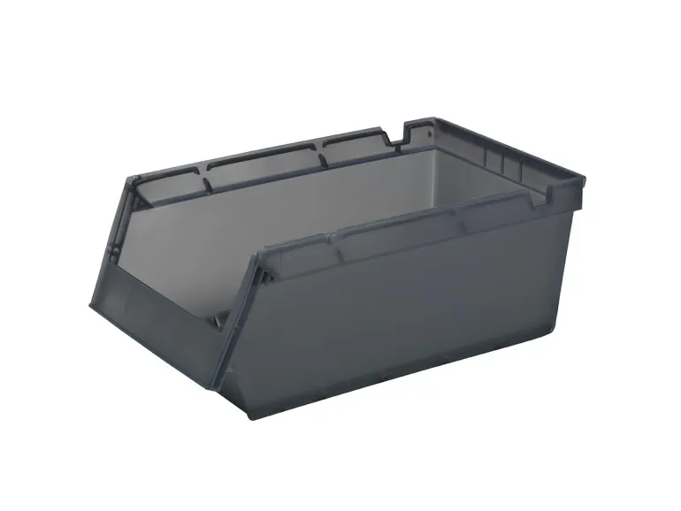 Vakaa ja kestävä modulaarinen laatikko polypropyleenia. Takareunan pyörät helpottavat käsittelyä. Ergonomiset väliseinät. Suorat ja vinot. Joustavasta materiaalista valmistetut väliseinät pysyvät paikoillaan käsittelyn aikana. Siirrettävä, joten säästät jopa 70 % varastoinnin ja kuljetuksen yhteydessä. Kestää koneöljyjä, orgaanisia liuottimia ja happoja. Lämmönkestävä -20 °C…+80 °C.