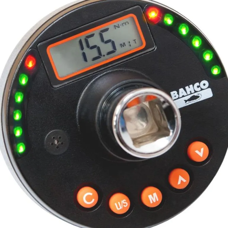 Bahco TAM1430 on elektroninen momentti- ja kulmamittasovitin, jossa on 9 esiasetuksen momenttiarvomuisti ja ääni- ja valodiodi-ilmaisimet.