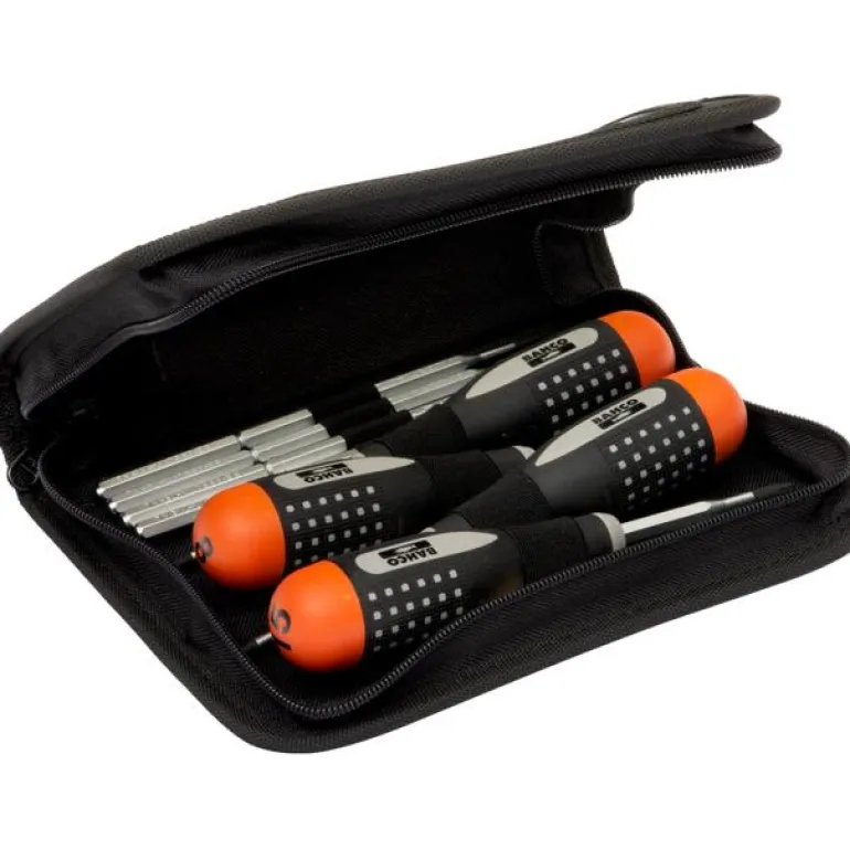 Bahco BE-6990-IPSET on momenttiruuvitalttasarja, jossa on neljä kahvaa, neljä Torx-kärkeä ja neljä Torx Plus -kärkeä. Kaikki osat toimitetaan kätevässä vetoketjullisessa kangaspussissa.