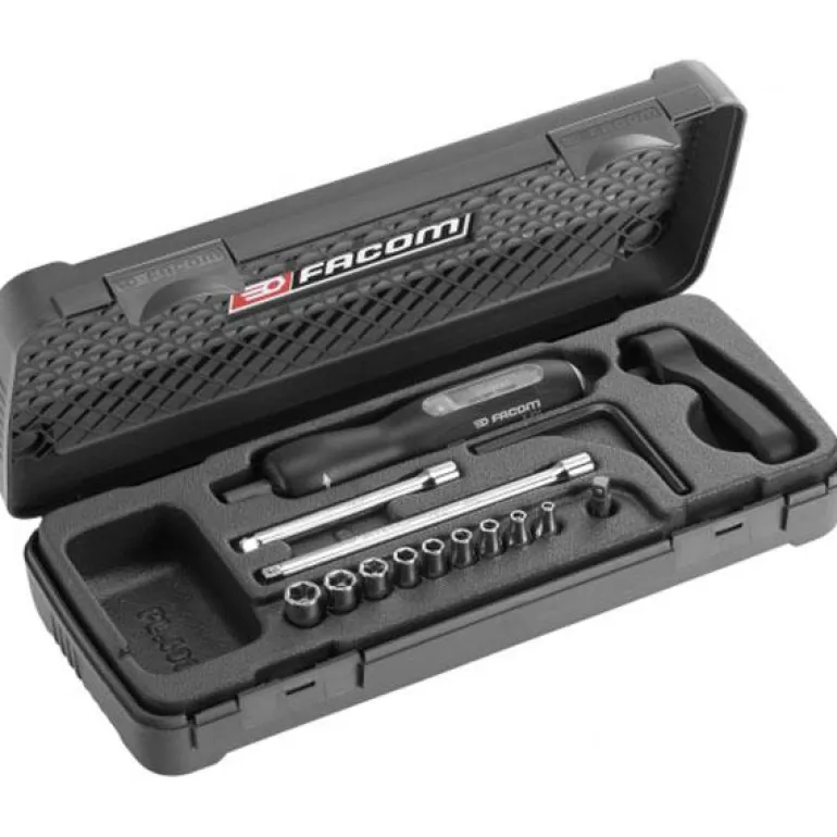 Facom A.402J1 on momenttiruuvitalttasarja, jossa on oikeanpuoleisella ohjauksella varustettu yksisuuntainen momenttiruuvitaltta, 1/4-tuumaiset ruuvihylsyt, naaraskuusiokulma, räikkäkahva, jatkeet ja säätöavain. Toimitetaan laatikossa, jossa on kalibrointitodistus ja yksilöllinen tunnistenumero.