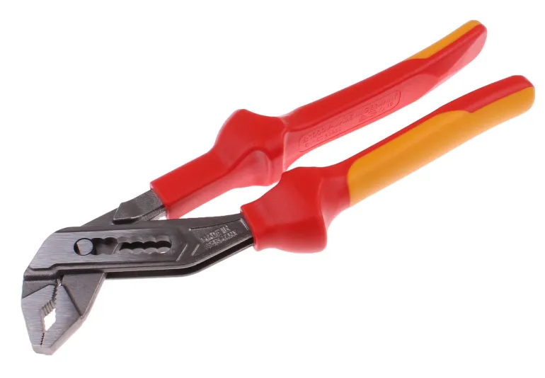 Kromivanadiiniterästä, kiiltävä suojamaalattu kärki. Jaettu liukujohde. Tarttumaleveys 44 mm putkille ja 40 mm kuusiomuttereille. Pihtien pituus 240 mm. Ergonomisesti muotoillut tarttumahylsyt kaksikomponenttimateriaalia. Hyväksytty jännitteelliseen työskentelyyn 1 000 voltin jännitteeseen asti.