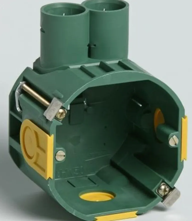 Rasia, johon voidaan asentaa joustavia putkia seinälevyyn ilman reikien tekemistä ennen levyn asennusta tai hakumagneettien käyttöä. Rasia kiinnitetään seinälevyyn, ja se voidaan siten sijoittaa vapaasti koolausrimojen väliin. Taittuva kaksoisnysä, jonka ansiosta rasia on helppo asentaa jopa 45 mm:n koolaukseen. Nysä on sisäpuolelta kartiomainen, ja siihen sopii sekä 16 mm:n että 20 mm:n taipuisat putket. Kätevä yhdistelmäasennukseen, sillä useita rasioita voidaan liittää ilman lisävarusteita, ja rasioissa on piikit reiän keskipisteen merkitsemistä varten. Mikään ulkoneva laippa ei tarjoa yhtä siistiä asennusta kuin perinteinen rasia. Halogeeniton ja hyväksytty, hehkulankatestattu 850º. Jos tarvitaan pidempiä asennusruuveja, käytä sopivan pituista upotettua M3-ruuvia. Reiän tekemiseen käytetään rasiajyrsintä T75 tai 76 mm:n reikäsahaa.