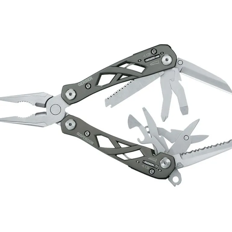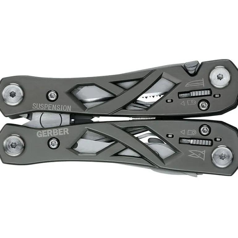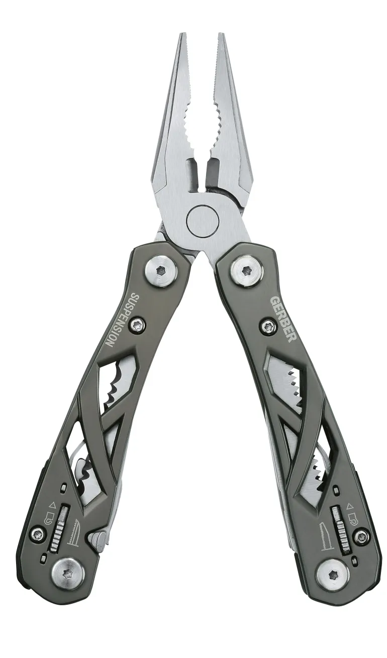 Gerber Suspension 1014005 on monitoimityökalu, perhosmalli, jousikuormitteinen. Varustettu pihdeillä, leikkurilla, sileällä ja tasaisella terällä, sahalla, pienellä ja keskisuurella uraruuvitaltalla, ristipääruuvitaltalla, tölkinavaajalla, pullonavaajalla ja saksilla.