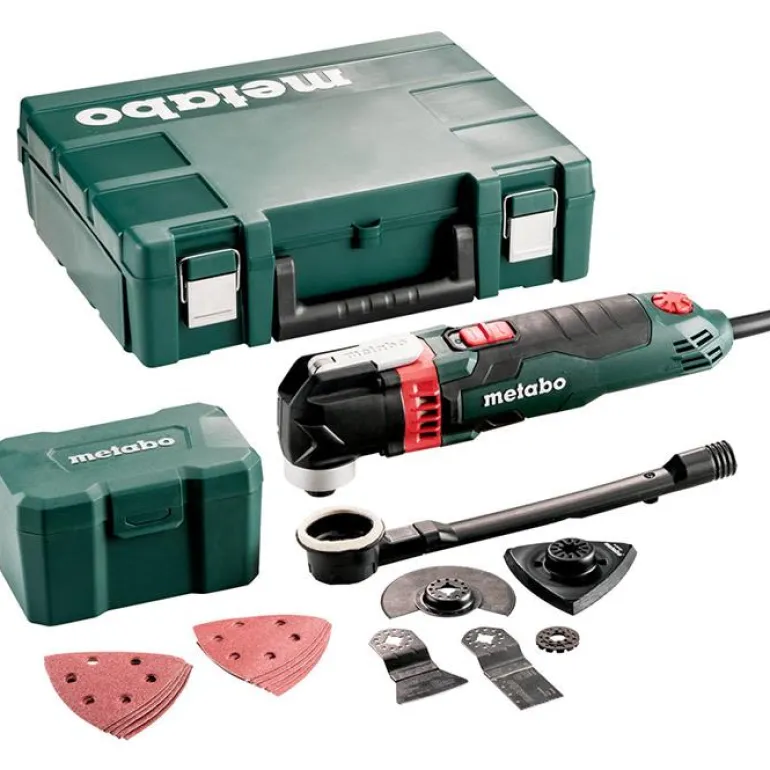 Metabo MT 400 QUICK SET on monitoimityökalupaketti eri materiaalien optimaaliseen sahaukseen, hiontaan, kaavintaan ja raspaukseen sisustustöissä. Nopea ja tehokas – suuri 3,2°:n värähtelykulma ja VTC-elektroniikka, joka pitää nopeuden vakiona kuormituksen aikana Kaksi erittäin kirkasta LED-työvaloa valaisevat työkohteen