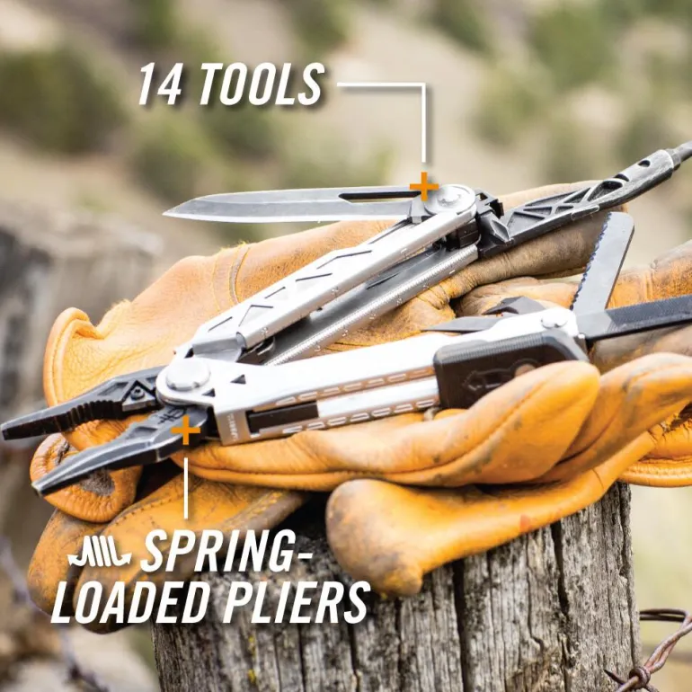 Viimeistelty, lujatekoinen ja toimiva työkalu, joka hienosta muotoilustaan huolimatta soveltuu kovaankin käyttöön. Tämän mallin toimitukseen sisältyy käännettävät katkaisupihdit, jotka ovat myös vaihdettavat, terävät jousikuormitteiset pihdit, pullonavaaja jne. 12 toimintoa, muun muassa pihdit, naulanvedin, pullonavaaja ja ruuvitaltta, täydellinen työkalu kaikkiin tilanteisiin. Lujatekoinen rakenne ja pitkä terä (terän pituus: 8,2 cm), mahdollista avata yhdellä kädellä peukalon avulla. Voidaan säilyttää kaikissa laukuissa kompaktin koon ja käytännöllisen nylonkotelon ansiosta.