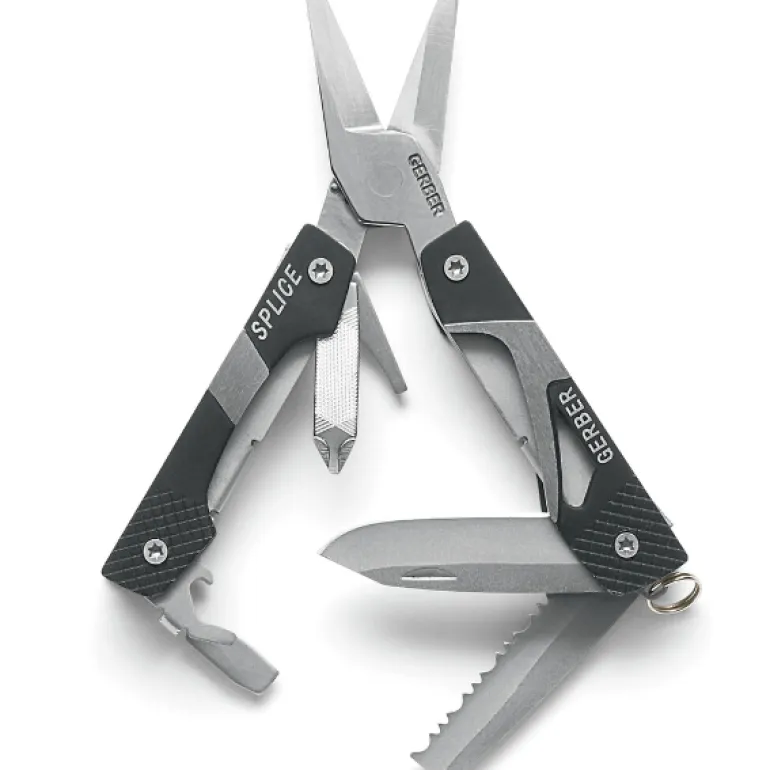 Splice on yksinkertainen pieni monitoimityökalu, jolla hoituvat pienet päivittäiset tehtävät. Helppo kiinnittää avaimenperään, mutta soveltuu muotoilunsa ansiosta myös taskussa pidettäväksi. Useimmista monitoimityökaluista löytyvät pihdit on tässä korvattu saksilla. 8 toimintoa, muun muassa sakset, pullonavaaja ja ruuvitaltta. Täydellinen työkalu kaikkiin tilanteisiinLujatekoinen ja kestävä rakenne, terän pituus 3,8 cm, kahdella kädellä avattava. Kätevä muotoilu, sopii taskuun kuin taskuun kokoon taitettuna kompaktin kokonsa ansiosta, rengas avaimenperään kiinnittämistä varten.